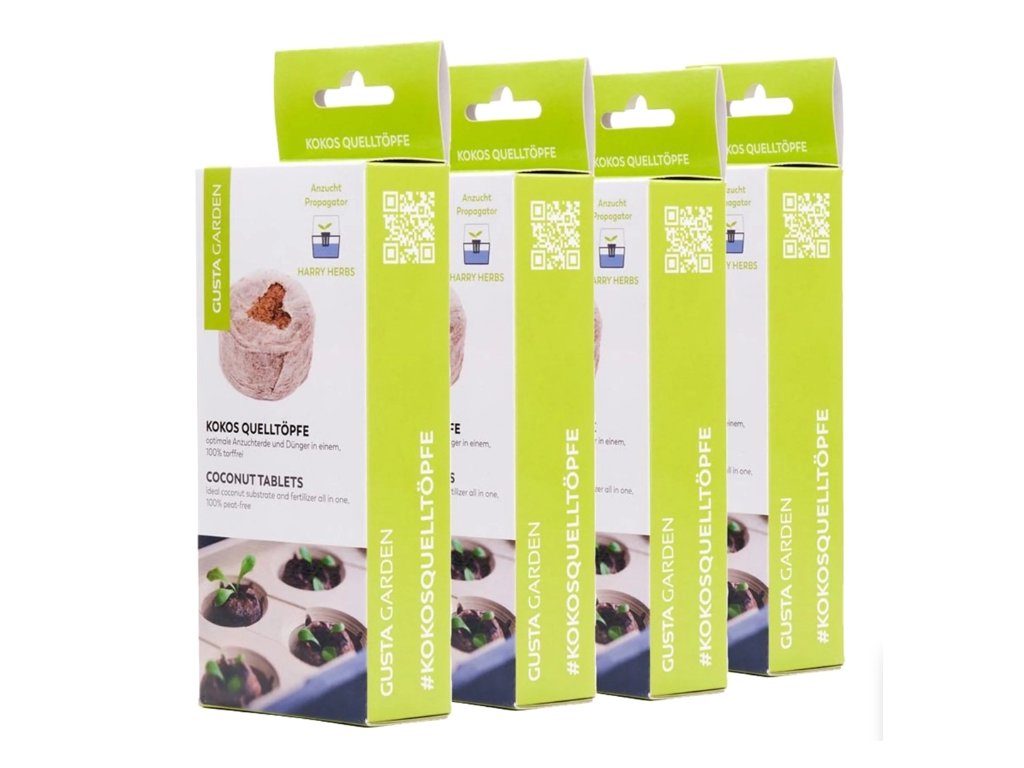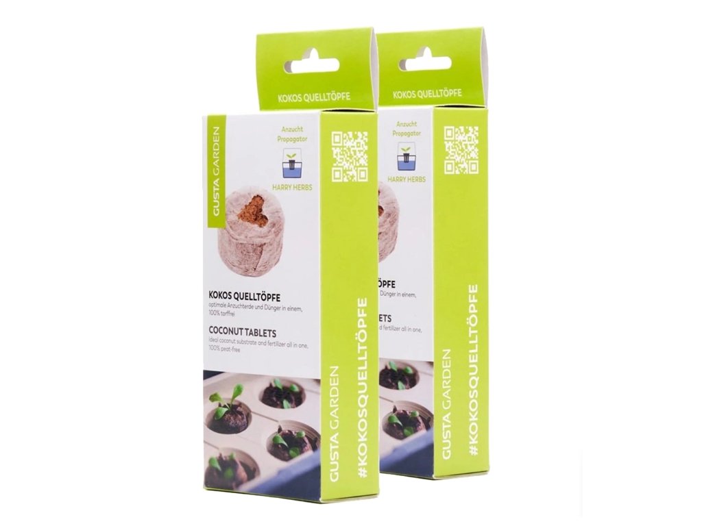 Kokosové tablety sú dehydrované, po pridaní vody však nabobtnajú, čím vytvoria základ pre rast rastlín. Praktická sieťka umožňuje jednoduché presádzanie do väčších kvetináčov bez toho, aby došlo k poškodeniu koreňov. Ideálne na pestovanie v samozavlažovacích kvetináčoch Harry Herbs.