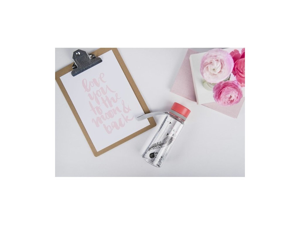 Zdravá fľaša na pitie EQUA Birds, 600 ml vyniká nielen štýlovým dizajnom, ktorý kombinuje priehľadnosť materiálu s jemným vzorom. Pri jej používaní oceníte tiež jej praktickosť. Na jednoduchšie prenášanie slúži pridané pútko, umývanie uľahčí široký otvor. Na výrobu bol použitý bezpečný materiál Tritan, ktorý neobsahuje BPA ani iné škodlivé látky a určený je na styk s potravinami. Opakovane použiteľná zdravá fľaša na pitie sa navyše dá používať aj na teplé nápoje − odoláva teplotám až do 100 °C.