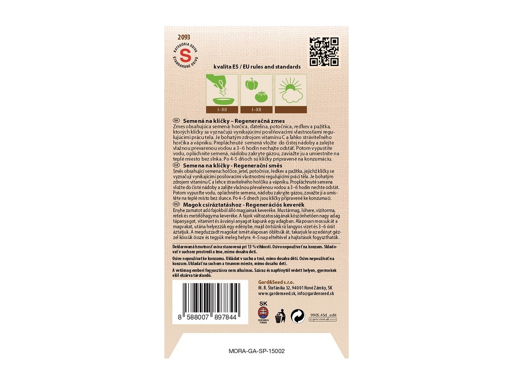 Je bohatým zdrojom vitamínu C a ľahko stráviteľného horčíka a vápniku. Prepláchnuté semená vložte do čistej nádoby a zalejte vlažnou prevarenou vodou a 3–6 hodín nechajte odstáť. Potom vypustite vodu, opláchnite semená, nádobu zakryte gázou, zaviažte ju a umiestnite na teplé miesto bez slnka. Po 4-5 dňoch sú klíčky pripravené na