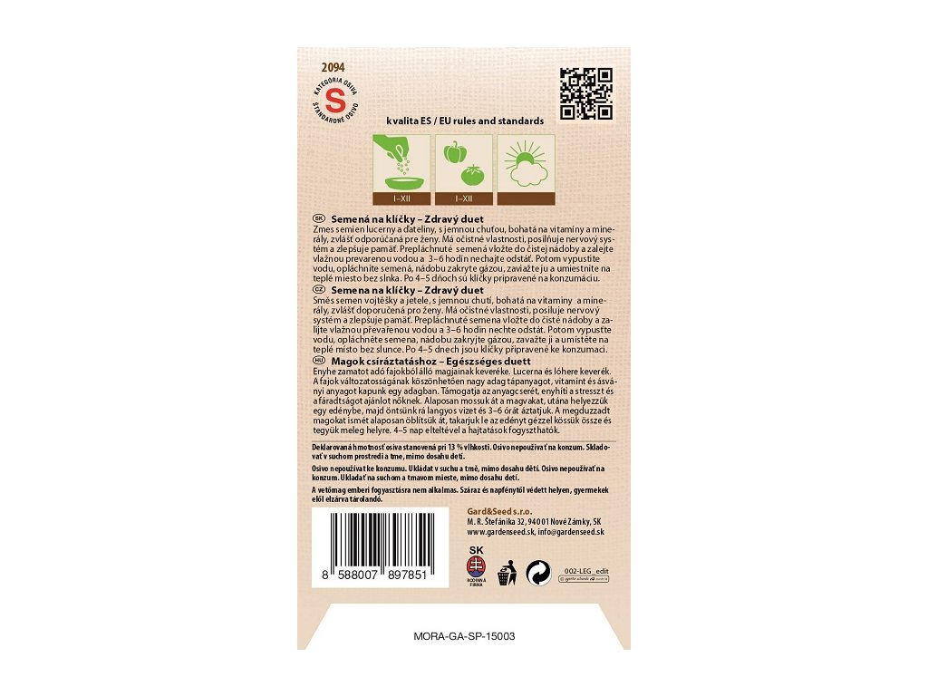 Má očistné vlastnosti, posilňuje nervový systém a zlepšuje pamäť. Prepláchnuté semená vložte do čistej nádoby a zalejte vlažnou prevarenou vodou a 3–6 hodín nechajte odstáť. Potom vypustite vodu, opláchnite semená, nádobu zakryte gázou, zaviažte ju a umiestnite na teplé miesto bez slnka. Po 4–5 dňoch sú klíčky pripravené na konzumáciu.