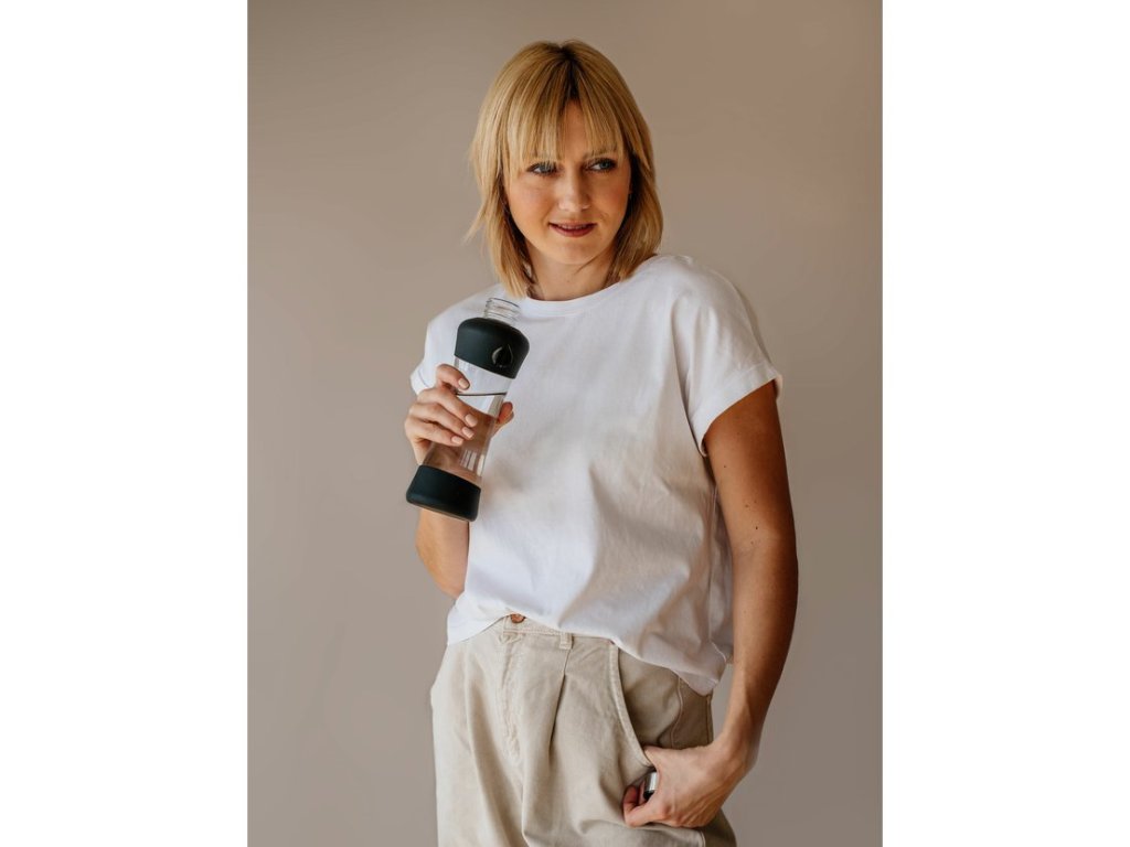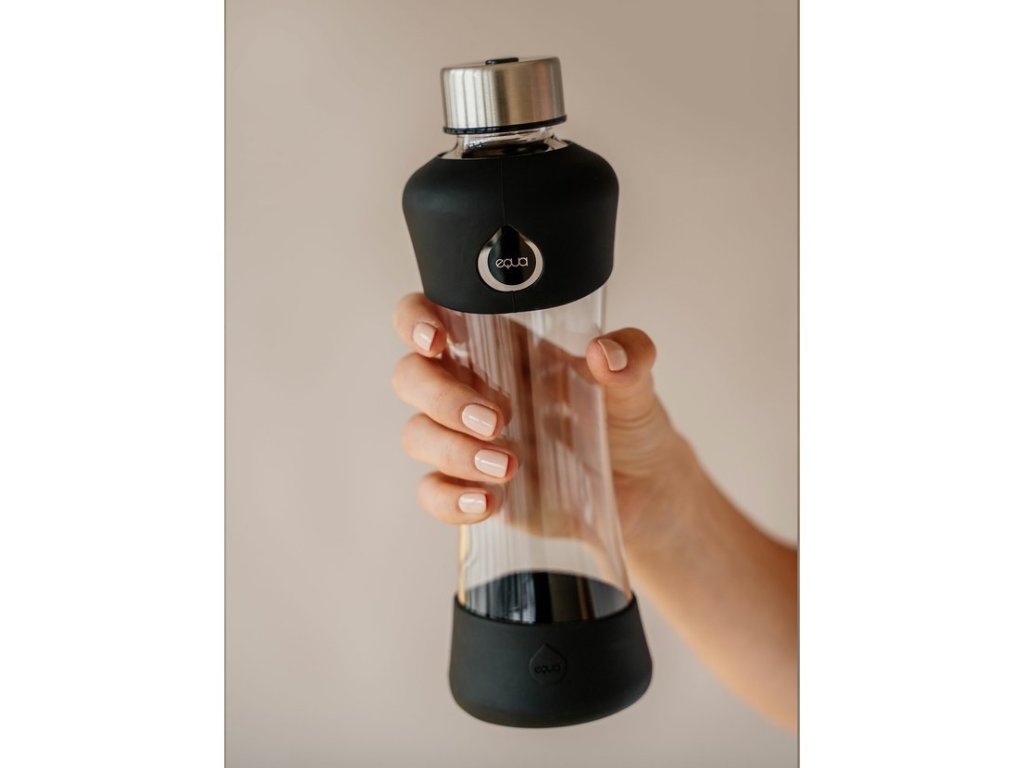 Sklenená fľaša EQUA ACTIVE Black je vyrobená z recyklovateľného borosilikátového skla, ktoré vyniká odolnosťou voči vysokým teplotám. Dá sa pohodlne umývať, nezostávajú v nej zachytené žiadne pachy a materiál vyniká aj pevnosťou. Na zvýšenie ochrany pred poškodením nárazmi ju dopĺňajú silikónové prvky v hornej aj spodnej časti. Fľaša EQUA ACTIVE je navrhnutá na rýchle používanie aj počas aktívnych dní. Perfektne sadne do ruky a pohodlne sa zmestí do športovej tašky či batoha a môžete si zobrať aj do práce.