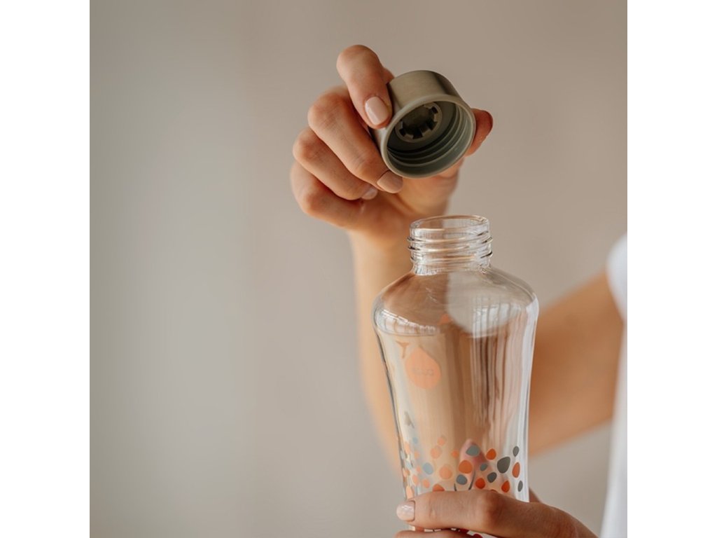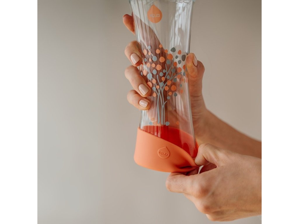 Sklenená fľaša EQUA Squeeze Peach Tree je dizajnová fľaša zo Slovinska, vytvorená štúdiom Desnahemisfera. Vyrobená je z borosilikátového skla, ktoré je ľahké, odolné voči teplu aj chemikáliám a zároveň 100 % recyklovateľné. Vrchnák z nerezovej ocele dotvára elegantný vzhľad fľaše, odnímateľný silikónový pás chráni sklo pred poškodením.