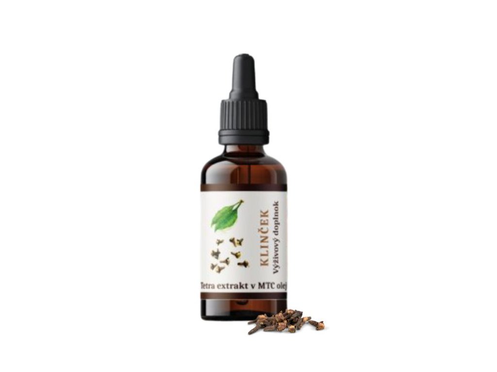 Tetra extrakt klinčekovca voňavého sa získava šetrným spôsobom, ktorý zachováva všetky účinné látky rastliny. Vstrebávanie do organizmu zabezpečuje kokosový MCT olej (C8). Terapeutické kvapky s tetra extraktom klinčekovca voňavého (20%/3000mg) v MTC – C8 oleji pomáhajú proti aftám a iným zápalom v ústnej dutine, pri dýchacích problémoch aj na zle hojace sa rany. Majú antiseptické, antivírusové, protiplesňové a antibakteriálne účinky.