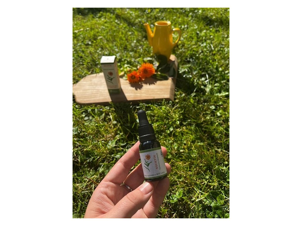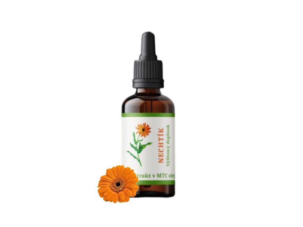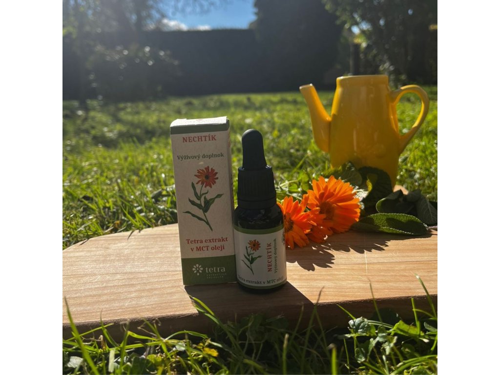 Tetra extrakt z vňate nechtíka lekárskeho získaný šetrným spôsobom, ktorý zachováva všetky účinné látky rastliny. Výborné vstrebávanie zabezpečuje kokosový MCT olej (C8). Nechtík lekársky spája krásu kvetu s liečivou silou. Terapeutické kvapky s tetra extraktom z vňate nechtíka lekárskeho (1,5%/225mg) v MTC – C8 oleji prospievajú zraku, pôsobia proti nádorom a majú protizápalové účinky. Táto bylinka pomáha tiež pri nepravidelnej a silnej menštruácii, používa sa ako obklad počas hojenia rán, podporuje činnosť srdca, pečene a obličiek.