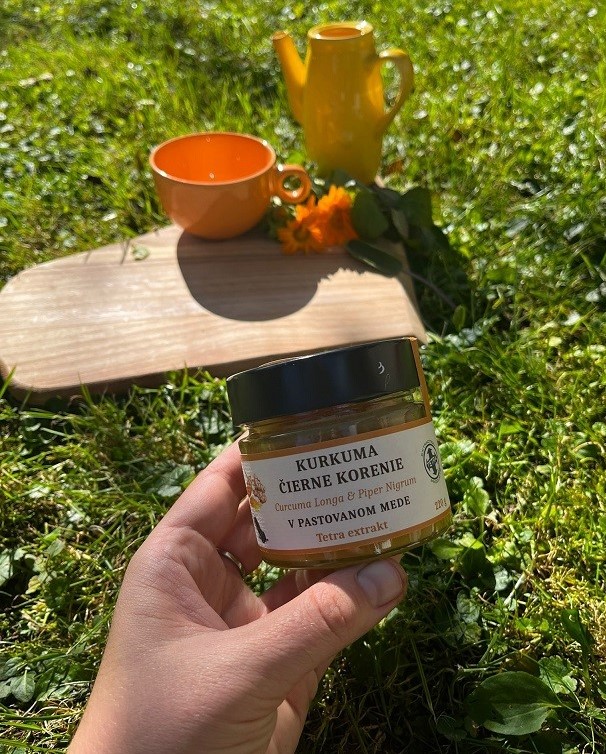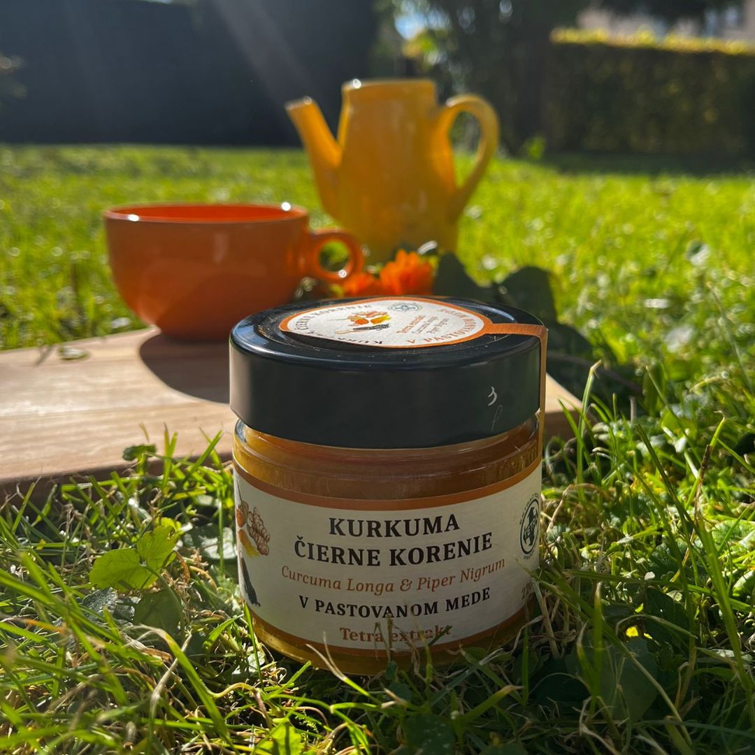 Kurkuma je považovaná za najzdravšie korenie na svete. Jej účinky na zdravie a unikátnu chuť vám prinesie v kombinácii s pastovaným medom. Pastovaný terapeutický med s tetra extraktom kurkumy a čierneho korenia obsahuje vysoko koncentrované extrakty kurkumy a čierneho korenia vyrobené metódou tetra extrakcie.