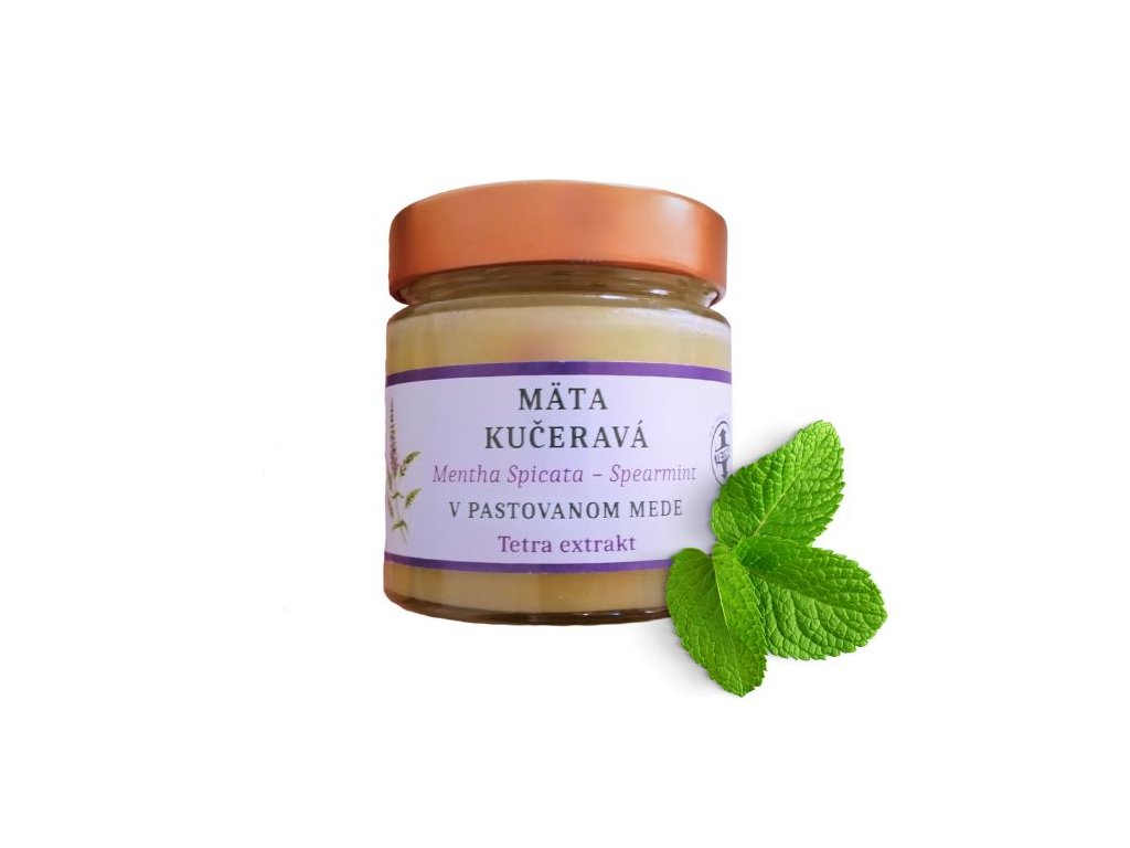 Doprajte si spojenie sviežej chuti mäty a medu, ktoré vyniká priaznivými účinkami na zdravie. Pastovaný terapeutický med s tetra extraktom mäty kučeravej oceníte počas leta po spálení na slnku aj nadmernom potení. Obsiahnuté fytoestrogény podporia hormonálnu rovnováhu u žien. Terapeutický med s mätou má tiež protizápalové účinky.